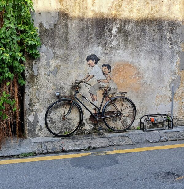 街中の壁に描かれたアート。一番有名な「自転車に乗る子供たち」は、Armenian Street(アルメニアン通り)にあります。